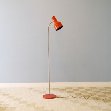 Lampadaire scandinave 1960, base et abat-jour en métal laqué rouge, axe en aluminium, possibilité d'orienter la lumière avec précision, design suédois des années 60, joli luminaire vintage pour apporter une touche rétro à votre décoration, bon état, quelques traces d'usage.