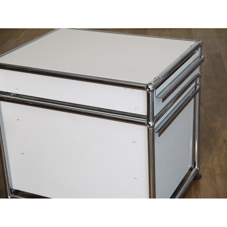 Meuble vintage de Usm Haller design 1970, meuble design vintage, structure métallique, 2 tiroirs,fabrication et design de Fritz Haller pour USM Haller, Suisse 1970, un meuble vintage emblematique du design du XXeme siecle, bon état