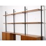 Systeme mural d'etageres de Olle Pira 1960, systeme d'etagere modulable vintage scandinave, montants metalliques, 2 caissons et etageres en teck, fabrication et design suedois de Olle Pira pour String vers 1960, un meuble vintage pratique et decoratif, bon état traces d'usages