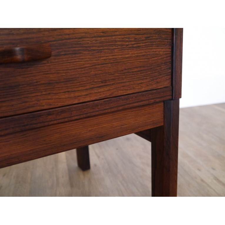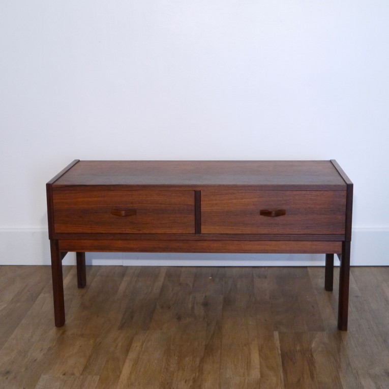 Petit meuble de rangement scandinave en palissandre, meuble d'appoint ou commode vintage en palissandre, 2 tiroirs, fabrication et design scandinave vers 1960, un meuble d'appoint vintage pratique pour les petits espaces, bon état.