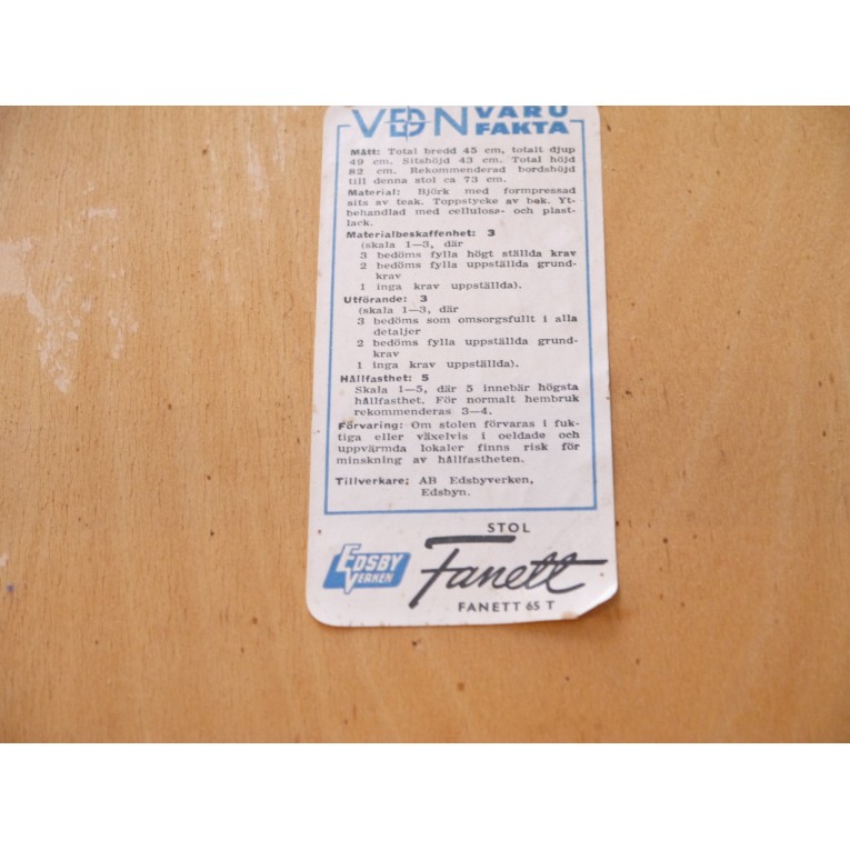 Chaises Fanett vintages scandinaves 1950, 4 chaises Tapiovaara, structure en hêtre, assise en teck, dossier à barreaux, design d'Ilmari Tapiovaara vers 1950 (Finlande) éditées par Edsbyverken, un modèle très tendance qui s'accordera à merveille avec une table moderne ou de style industriel, très bon état (à noter un petit défaut sur une des assises).