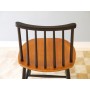Chaise vintage scandinave style fanett de Tapiovaara, chaise à barreaux en hêtre laqué noir, piétement et dossier, assise en teck, fabrication et design suédois des années 60, un modèle décoratif et tendance proche de la fameuse chaise fanett de Tapiovaara, bon état