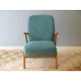 Fauteuil vintage scandinave année 50 bleu, fauteuil vintage scandinave structure en hêtre teinté, assise refaite, tissu velurs bleu "canard", fabrication et design suédois des années 50, jolies lignes, confort et faible encombrement pour ce fauteuil qui trouvera sa place dans toutes les décos, très bon état.