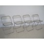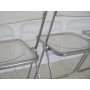 Serie de 4 chaises vintage italiennes "plia" design Giancarlo Piretti pour Castelli, chaises vintage structure en acier chromee pliable, assise et dossier en plastique translucide légèrement teinté, design de Giancarlo Piretti pour castelli vers 1970, un classique du design italien, pratique et facile à associer, bon état, traces d'usages.