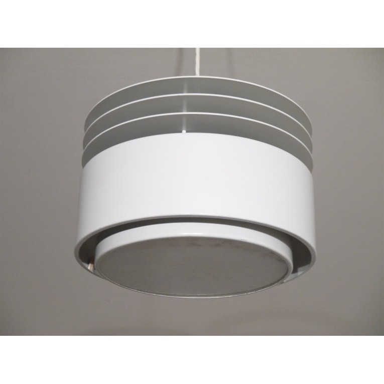 Suspension danoise "Hydra" par Jo Hammerborg, suspension vintage scandinave en métal laqué blanc, éléctricité téstée, fabrication et design danois par Jo Hammerborg pour Fog&Morup, un classique du design scandinave ideal pour l'eclairage d'une pièce à vivre, bon état.
