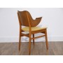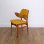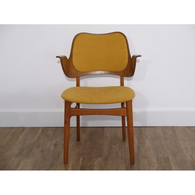 Chaise vintage modèle 107 par Hans Olsen Danemark 1960, chaise vintage scandinave, structure en Hetre teinté, assise et dossier retapissés tissu moutarde, fabrication et design danois de Hans Olsen dans les années 60, un classique du design scandinave, bon état, traces d'usages.