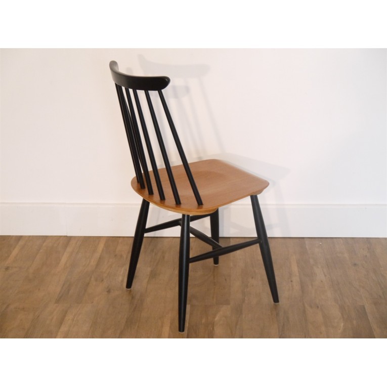 Chaise scandinave modèle Fanett design Ilmari Tapiovaara, chaise vintage scandinave, structure en bois laqué noir, assise en teck, fabrication et design d'Ilmari Tapiovaara pour Edsbyverken, la chaise Fanett est un modèle iconique du design scandinave, bon état.
