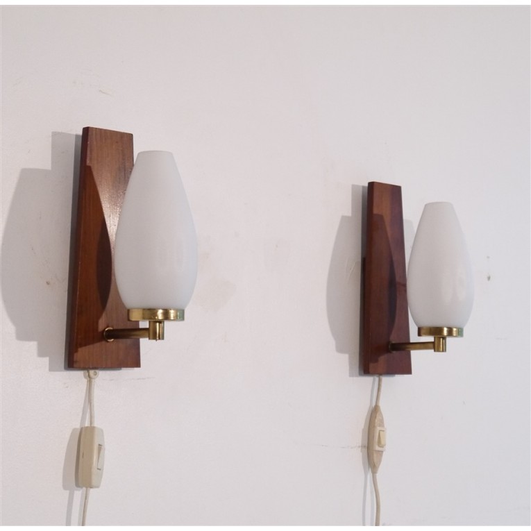 Paire d'appliques scandinave vintage teck et opaline, appliques vintage scandinave, structure teck et laiton, verre opalin, éléctricité téstée, fabrication et design scandinave des années 1960, un luminaire vintage pour eclairer dans toutes les pièces de la maison, bon état.
